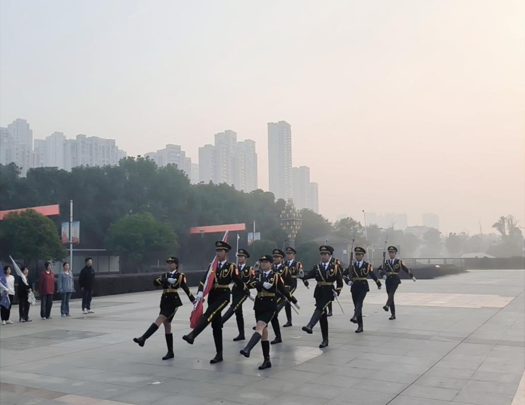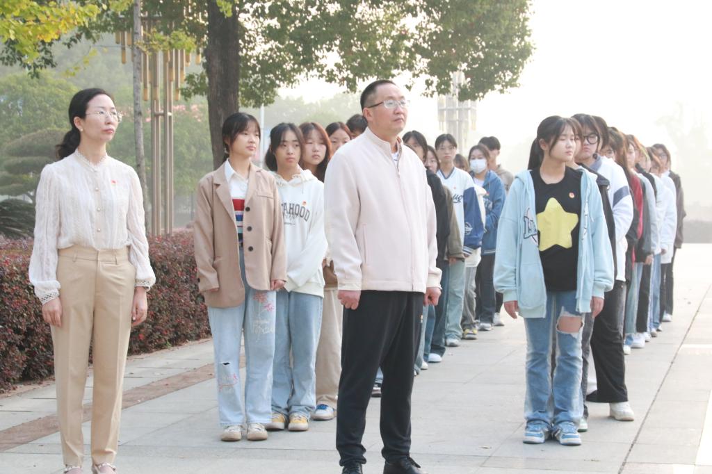 早晨7点整,升旗仪式正式开始。国旗护卫队迈着整齐划一、铿锵有力的步伐,护卫着鲜艳的五星红旗入场,伴随着庄严的《义勇军进行曲》,五星红旗冉冉升起,全体师生精神饱满,向国旗行注目礼。
