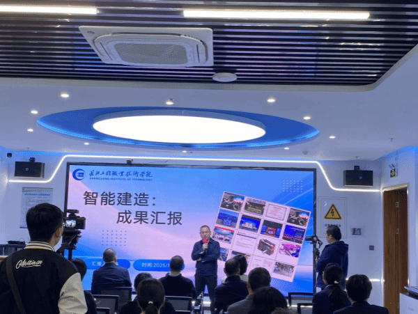 观摩尾声,智能建造公司经理郑睿全面汇报了公司近年来的发展成果与实践经验。从世界职业院校技能大赛、国赛一金五银的突破性成绩,到“双师型”教师队伍建设成效;从3项湖北省自然科学基金项目的科研突破,到14项教育部供需对接就业育人项目的落地实施;从工程造价专业专本联合培养的贯通式育人,到每年5项以上企业技术服务的成果转化,全方位展现了公司聚焦智能建造前沿、服务区域发展战略的责任担当。