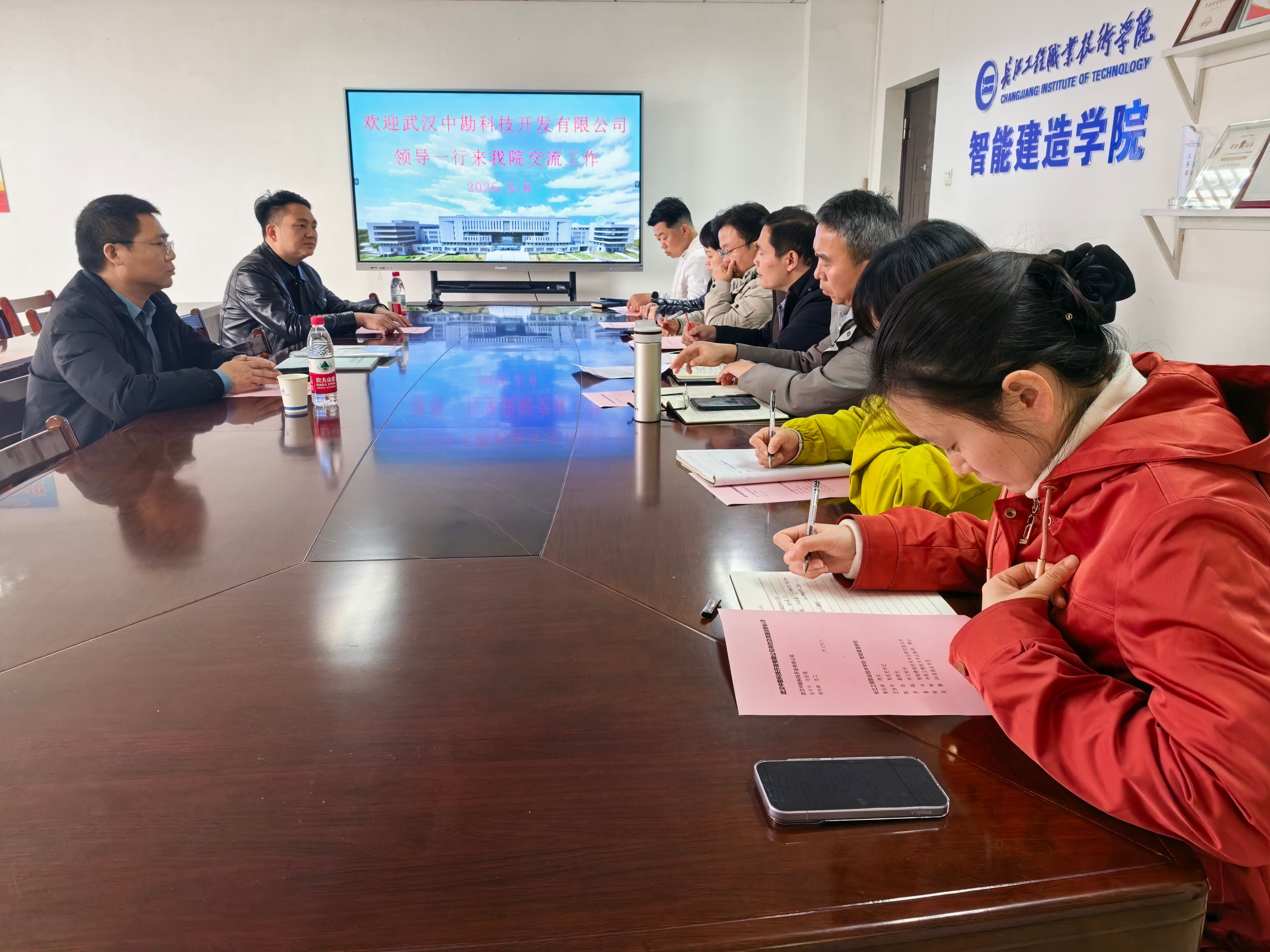 3月6日,武汉中勘科技开发有限公司总经理金仟仟、总工程师杨向荣一行到访谈球吧智能建造公司,双方围绕深化校企合作、协同育人开展座谈。智能建造公司经理黄世涛、党总支书记汪吉平及教师代表参与交流。