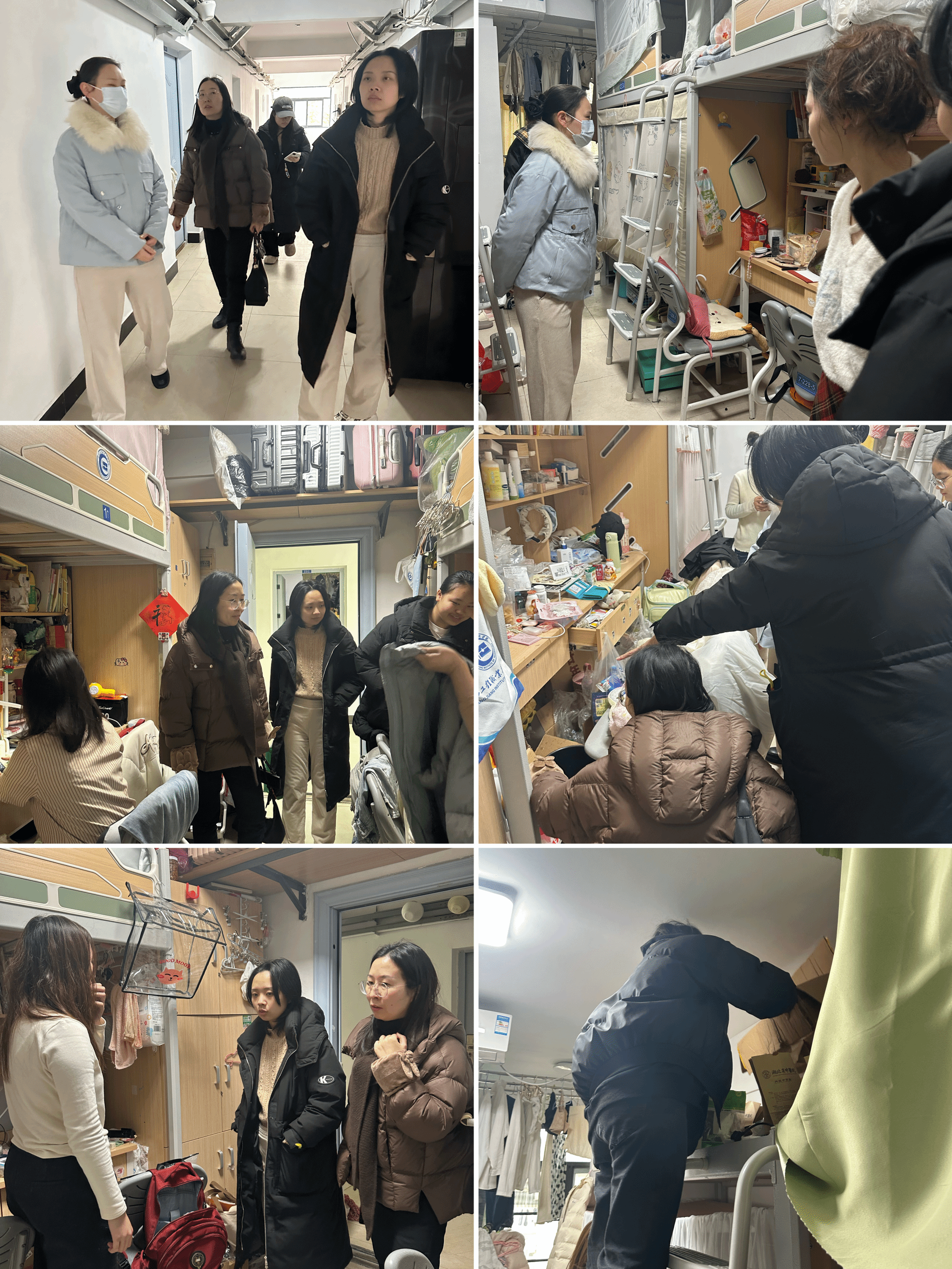 公司依据部署迅速行动,由经理、党总支副书记带队,全体专兼职辅导员共同对员工宿舍开展了全覆盖、拉网式安全大检查。老师们深入每间宿舍,对用电规范、消防设施、卫生状况及防盗措施进行了严格排查,特别对桌底、门后、空床铺等隐蔽角落进行了重点清查。检查过程中,老师们与同学们亲切交谈,反复叮嘱大家务必提升安全意识,离校前切实做到“人走断电、关窗锁门”,妥善保管个人物品,严格遵守宿舍管理规定。